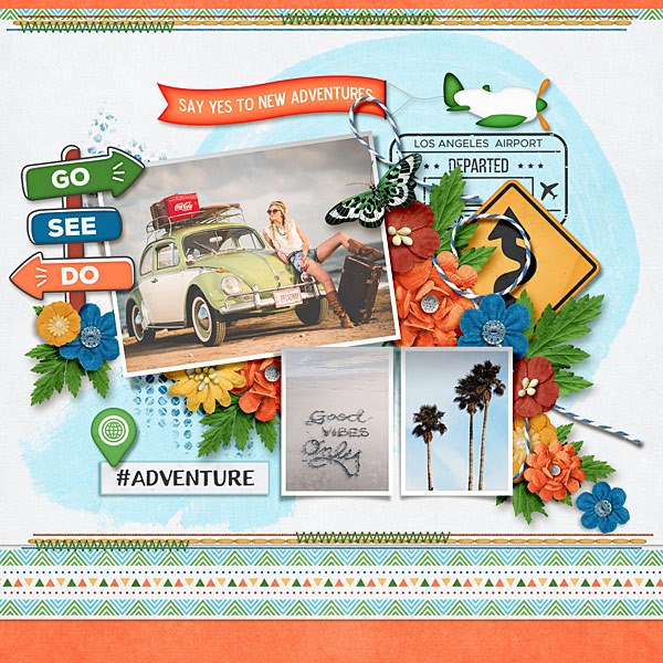 A digital scrapbooking collection by LJS Designs, Go Your Own way is loaded with travel inspired papers, elements and word art that can be used to scrap your vacation story, your independent nature or your personal journey on the road of life.